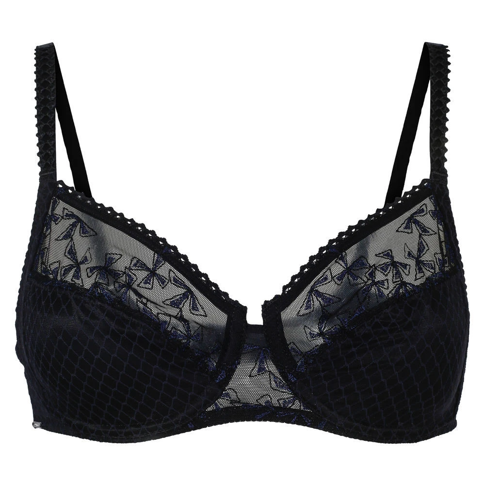 Lekker BH med bøyle fra Chantelle, nydelig sort farge med lekre blå detaljer. Passer til truse fra samme serie.