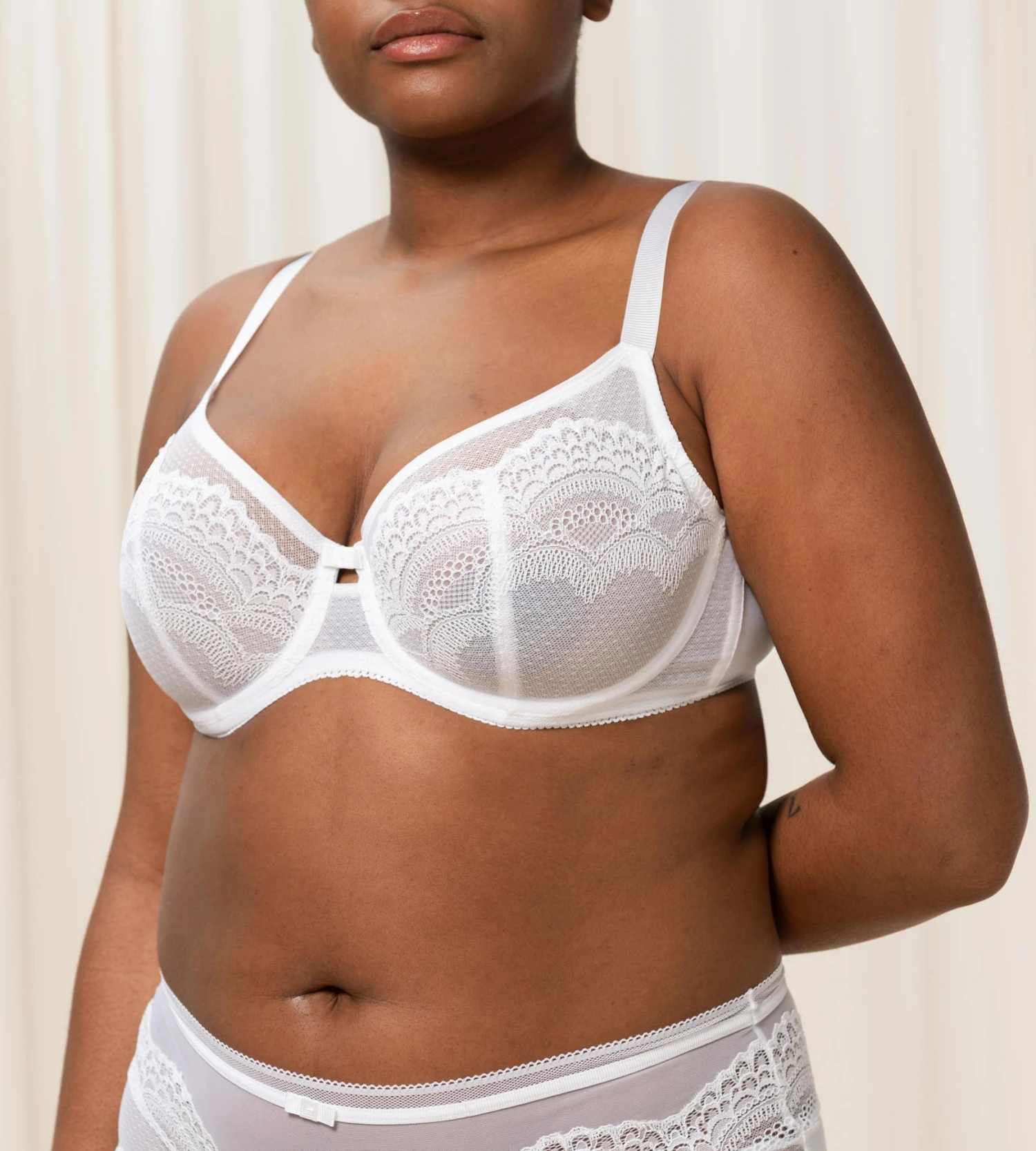 - Myke, fleksible cuper uten vattert i gjennomsiktig blonder med delikat tyllbeskjæring